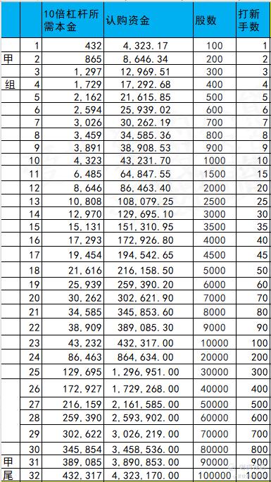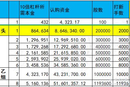 乙头需要认购资金865万,乙组的各档融资所需要的本金还有融资金额对应如下表: