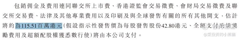 然后这个票招股书上按发售价42.80港元计算,公开的上市所有开支总额约为1.16万港元,募资额约20.44亿港元,占比约5.65%,开支相比募资额算是比较少了。