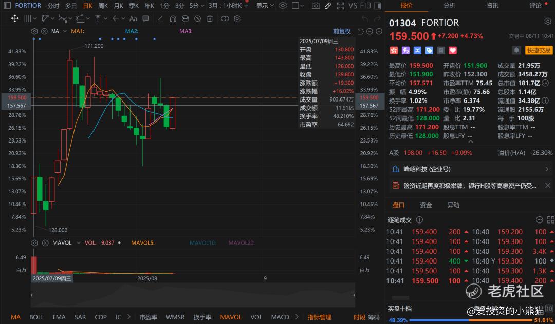 最后从资本市场角度来看,天岳先进基本面是还可以的,刚刚好科技板块最近在港股表现最近一段时间也很活跃、尤其是围绕这ai半导体这些的标的都表现不错,上一个ah股是FORTIOR,同样募资20亿左右,市值仅130亿,首日就涨了16%,上市之后累计上涨过40%,表现相当亮眼。天岳先进同样的募资规模也是ah股会表现如何?