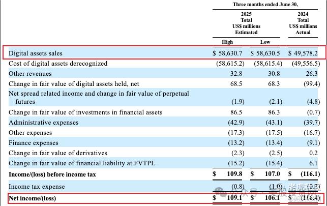 进入 2025 年,波动依旧。Q1 在 802.4 亿美元销售额下亏损 3.48 亿美元,Q2 销售额降至 586.3 亿美元却盈利 1.06–1.09 亿美元,两季间盈利反转接近 4.5 亿美元,反映出盈利高度依赖行情与资产价格。
