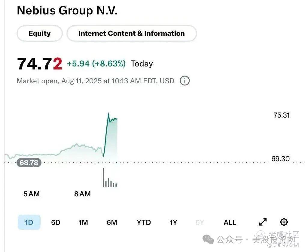 本周一,NBIS 股价已经强势突破70美元大关来到75美元高价。