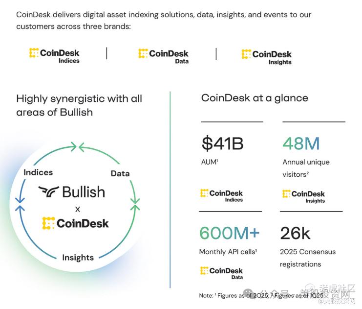 Bullish先后收购加蜜行业头部新闻网站CoinDesk和权威数据服务商CCData,直接握住三个关键入口——新闻媒体、数据平台和可交易的加蜜指数。三者相互联动:媒体制造热点与关注度,数据提供权威分析,指数则能直接转化为可交易产品。当交易量被带动起来,又会反过来丰富数据和新闻内容,形成一个“自带流量、闭环变现”的循环。