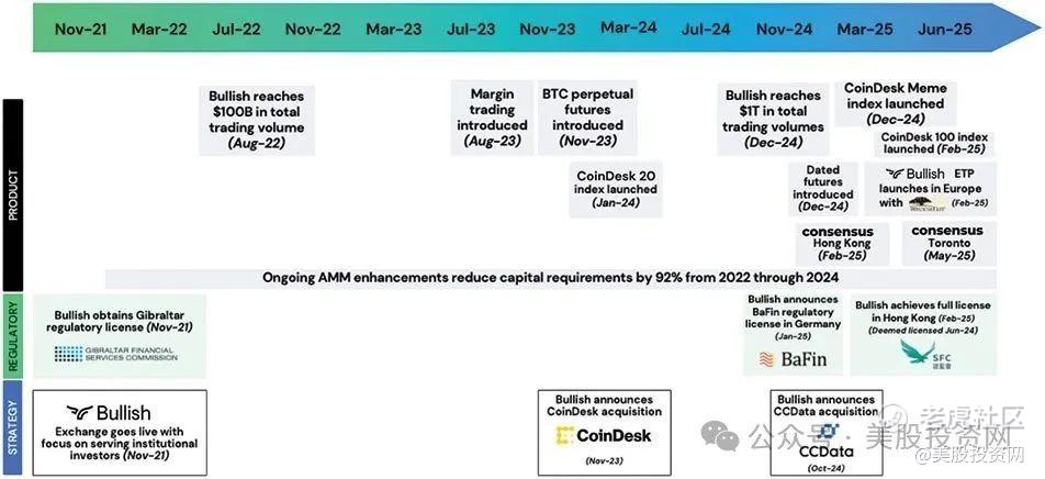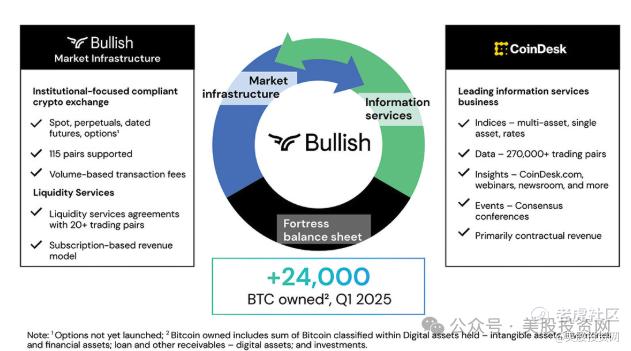 有了 Farley 的监管视野,加上华尔街资本的长期支持,Bullish 从创立之初就没有走加蜜行业常见的“轻资产、轻监管”试错路线,而是以“双主线”战略切入,定位在行业的“基础设施层”——这才有了它今天的两盘棋。