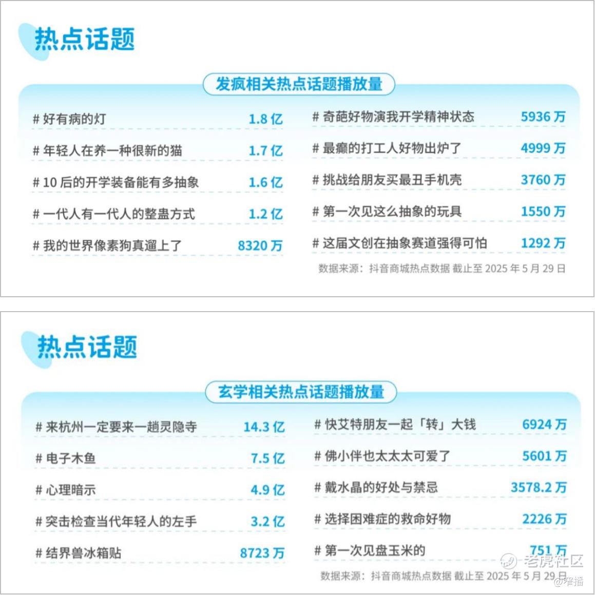 当「情绪消费」成为消费新趋势,我们也能从抖音上看到消费者在日常生活各个方面的情绪需求和消费选择:例如在生活必需品上购买各种「发疯」「解压」好物,抖音上#解压玩具 的热点话题播放量高达438亿次;再如「遇事不决,先整玄学」,从塔罗、占卜等内容消费,到水晶、电子木鱼、玄学冰箱贴等商品消费......
