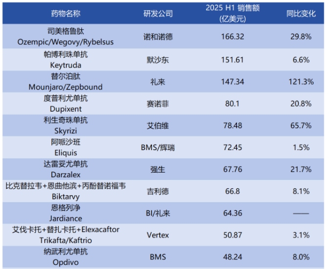 随着各家药企中期业绩披露,今年的全球畅销药排行也重新洗了牌。诺和诺德的司美格鲁肽以半年166.32亿美元销售额彻底碾压了默沙东K药登上榜首,礼来的双靶点替尔泊肽以121.3%的增速147.34亿美元销售额紧盯其后。