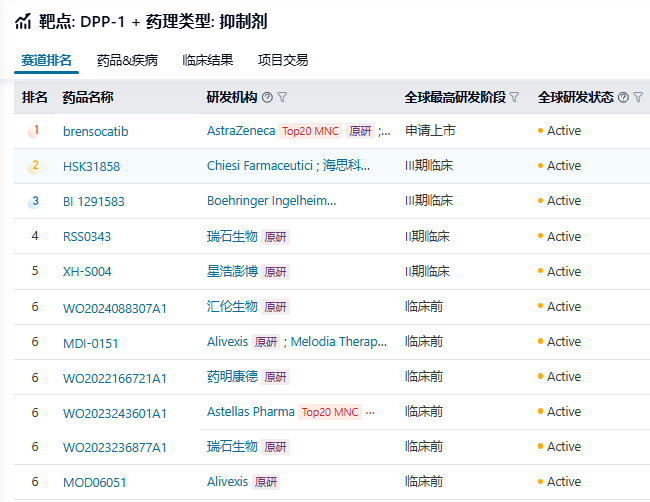 DPP-1抑制剂中,最知名的是阿斯利康的Brensocatib,今年2月FDA正式受理Brensocatib治疗非囊性纤维化支气管扩张症(NCFBE)的新药申请(NDA),并授予优先审评资格。有机构预计这款药2030年销售额将达到28亿美元。