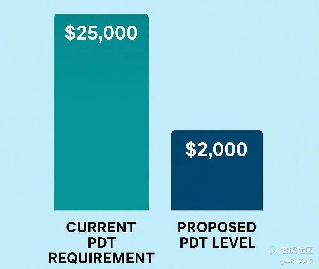 与此同时,一场可能改变散户交易格局的监管改革正在酝酿。据美股投资网了解到美国金融业监管局(FINRA)计划将“模式日内交易者”规则(Pattern Day Trader Rule)的最低权益要求从 25,000 美元降至 2,000 美元,并取消“五日四次”这一固定限制,改为由券商自行设定保证金要求。这条自 2001 年沿用至今的规则,原本旨在防止过度交易和保护投资者,如今被部分业内人士认为已不合时宜。