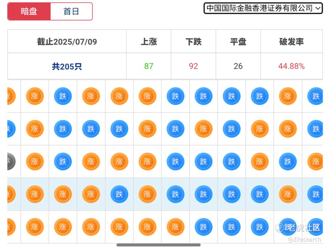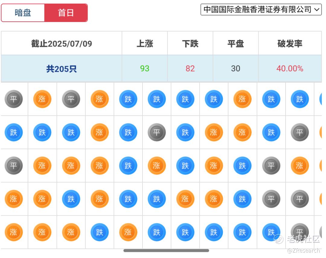 中金历史上作为保荐人共参与205个项目,暗盘87家公司上涨,92家公司下跌,26家公司平盘,破发率为44.88%;上市首日93家公司上涨,82家公司下跌,30家公司平盘,破发率为40.00%。