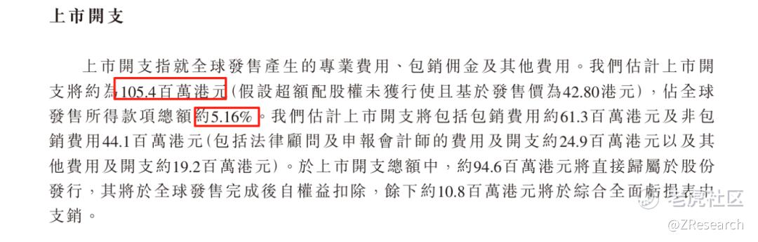 按照此次发行价42.80港元计算,预计公司港股上市的费用为1.05亿港元,预计将占全球发售所得款的5.16%,其中包销费用0.61亿港元。