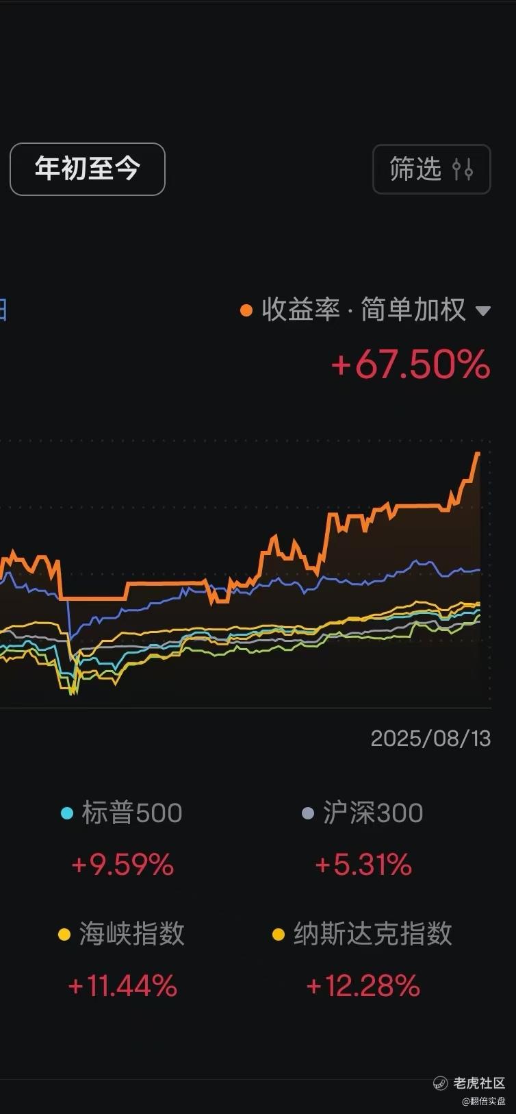 2025-08-13【实盘账户净值2025年第24次新高】五连阳五连涨!前晚大盘回调他涨,昨晚大盘大涨他更涨!按照某地的经验怎么看都该回调了,可人家偏不!这也充分的告诉了我们这样一个道理:在某块土地上理所当然天经地义的事,换块地可能就是完全不一样的场景,正所谓,他山之石可以攻玉!昨天说:“看今晚能不能一口作气攻下阶段前高”。目前收盘已站稳!【“事以密成言以泄败”+“黑暗森林法则”+“量子坍缩效应”决定了若是要赚亲自下场“淘金”的钱则需要闷声才能发财,而若是想赚“卖铲子”的钱才需要大声吆喝博流量。淘金与卖铲子,二者无关高下,只是目前的盈利模式属于亲自下场“淘金”,而非“卖铲子”!不“卖铲子”无需每日更新。更新原则:实盘账户净值创历史新高发净值曲线截图,建仓后上涨超过预期涨幅的61.8%发账户持仓K线截图】【活得久赚的久比赚得多更重要!时刻牢记必要时止损!止损就像“核按钮”平时几乎用不到但关键时刻必须要有。止损后虽然账面会亏一些但此时依然活着,活着就有机会再创新高!不止损类似闯红灯:可能大部分情况都能涨回来,但总会有1次被彻底消灭甚至还要负债彻底翻不了身!】【说明】做真实而又公开的实盘记录。真实,要求信息全部披露,最好代码也一并公开一览无余;公开,投资领域由于监管以及心理等各种因素所限,注定了不可能完全公开,很多东西根本就不适合在公开场合来讲。经深思熟虑,真实的,且适合在公开场合来讲的,只有账户净值从小做到大的“逻辑连贯性”,具体体现在净值曲线变动跟持仓K线走势的尽可能的连续展示。代码,尤其是单一持仓的实盘代码,是暂不适合公开展示的。实盘每次只做一只,这只要经过十几轮各种条件的严格筛选。一旦买入持有1-3个月。公开记录实盘资金曲线。不保证每天记录但绝对保证如实记录!净值创新高必更新!若隔夜实盘净值创新高则发文开头会标注【实盘账户净值202x年第N次新高】。
