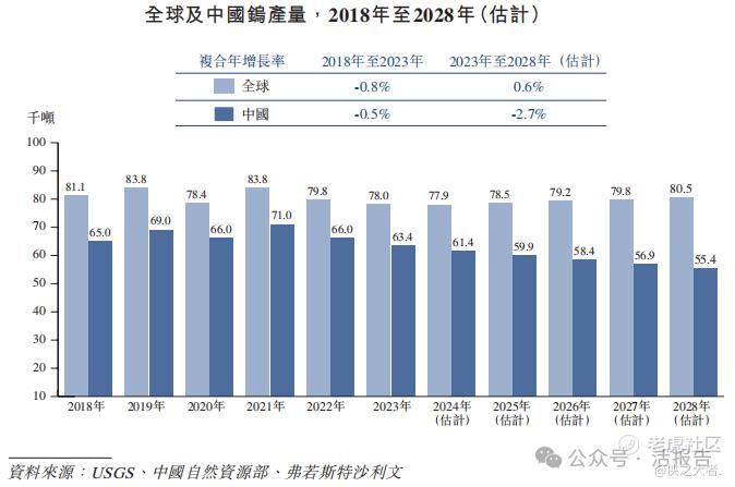 根据弗若斯特沙利文的资料,中国是2023年钨产量最大的国家。由于中国政府对钨精矿产品实行限制配额,加上前几年开工率相对较低,中国钨产量从2018年的6.50万吨减少到2023年的6.34万吨,年均复合增长率为-0.5%。未来,预计2028年中国钨产量将达到5.54万吨,2023年至2028年复合年增长率为-2.7%。