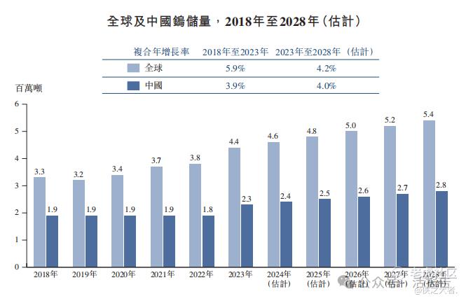 钨储量通常相对稳定。全球钨储量由2018年的330万吨增加至2023年的440万吨,复合年增长率为5.9%。随着世界各国稳步勘探各类钨矿,预期全球钨储量将于2028年达到540万吨,2022年至2027年的复合年增长率为4.2%。
