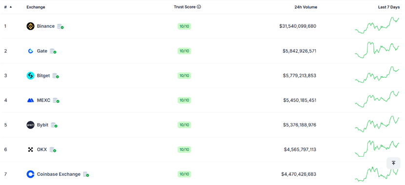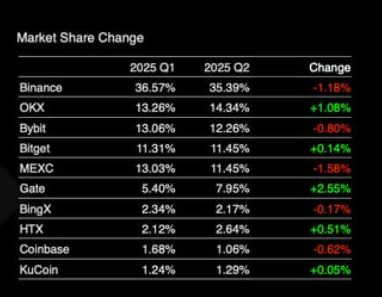 根据token insight的报告,2025年第二季度由于市场参与度疲软,前十大加密货币交易所的总交易量为21.6万亿美元,较今年第一季度下降6.16%。