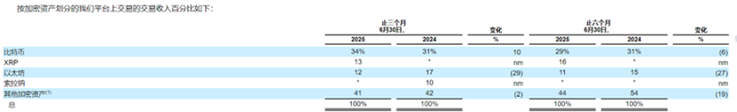 ETH过去是coinbase第二大交易收入的来源,2024年二季度占比17%。今年二季度的占比下降到11%。取而代之的是XRP(瑞波币),占比13%。