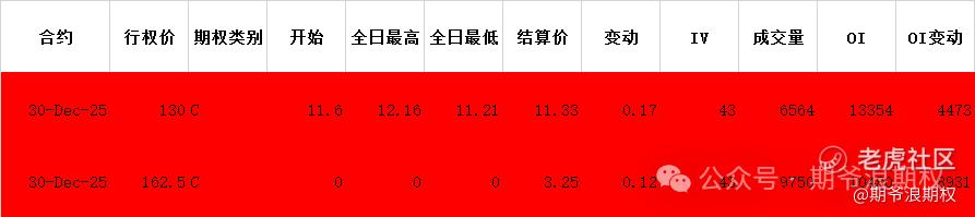 (2)美团:8月最大持仓范围115-150,窝轮牛熊街货分布105-145,今收124.4,上涨0.08%,期权盘路变化超过1000张的仓位如下图,红色的是增仓较大的仓位。难得疲软了一段时间,美团有要翻身的迹象了,大佬们都看多。