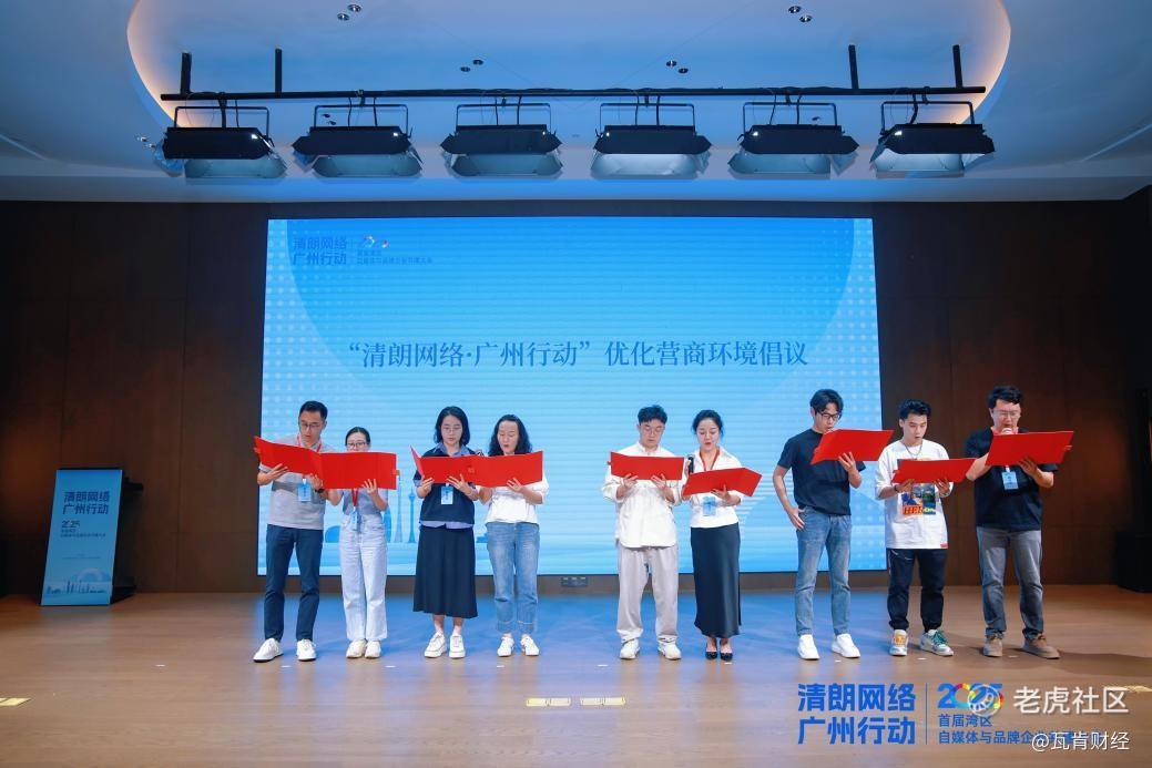 在这场汇聚政企媒力量的盛会上,还特别发起《“清朗网络・广州行动”优化营商环境倡议》,号召自媒体与企业以共识为基、以行动为笔,共同书写品牌与传播的共生篇章。由来自自媒体和品牌企业共9名代表共同宣读了这份倡议,彰显了各方共同构建清朗网络环境、优化营商环境的决心。