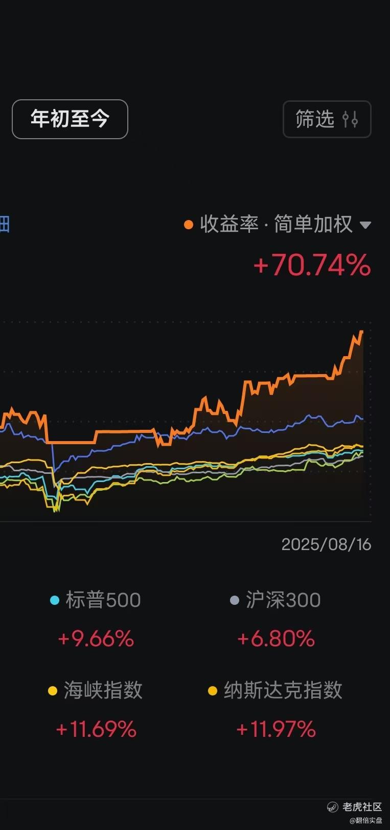 2025-08-16【实盘账户净值2025年第25次新高】调整两天周五晚间继续暴涨!且盘中最大涨幅与收盘涨幅双双创下本轮建仓以来最大!这效果,不是连涨胜似连涨!本来前两天,尤其是周三道指暴涨时回调,周五遇到点小利空,盘前显示还是跌的,结果收盘暴涨!有点丧事喜办,利空落地是利好的味道,不是这感觉咋那么熟悉呢?不过也不意外,被我的系统选定的目标,早涨晚涨早晚要涨!截止目前都尚未看到什么明面上的导致上涨的消息,就这样继续莫名其妙的持续上涨吧,挺好的。【“事以密成言以泄败”+“黑暗森林法则”+“量子坍缩效应”决定了若是要赚亲自下场“淘金”的钱则需要闷声才能发财,而若是想赚“卖铲子”的钱才需要大声吆喝博流量。淘金与卖铲子,二者无关高下,只是目前的盈利模式属于亲自下场“淘金”,而非“卖铲子”!不“卖铲子”无需每日更新。更新原则:实盘账户净值创历史新高发净值曲线截图,建仓后上涨超过预期涨幅的61.8%发账户持仓K线截图】【活得久赚的久比赚得多更重要!时刻牢记必要时止损!止损就像“核按钮”平时几乎用不到但关键时刻必须要有。止损后虽然账面会亏一些但此时依然活着,活着就有机会再创新高!不止损类似闯红灯:可能大部分情况都能涨回来,但总会有1次被彻底消灭甚至还要负债彻底翻不了身!】【说明】做真实而又公开的实盘记录。真实,要求信息全部披露,最好代码也一并公开一览无余;公开,投资领域由于监管以及心理等各种因素所限,注定了不可能完全公开,很多东西根本就不适合在公开场合来讲。经深思熟虑,真实的,且适合在公开场合来讲的,只有账户净值从小做到大的“逻辑连贯性”,具体体现在净值曲线变动跟持仓K线走势的尽可能的连续展示。代码,尤其是单一持仓的实盘代码,是暂不适合公开展示的。实盘每次只做一只,这只要经过十几轮各种条件的严格筛选。一旦买入持有1-3个月。公开记录实盘资金曲线。不保证每天记录但绝对保证如实记录!净值创新高必更新!若隔夜实盘净值创新高则发文开头会标注【实盘账户净值202x年第N次新高】。