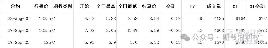 (2)美团:8月最大持仓范围115-150,窝轮牛熊街货分布105-145,今收121.5,下跌0.16%,期权盘路变化超过1000张的仓位如下图。总体感觉,美团接下来很可能保持窄幅震荡。