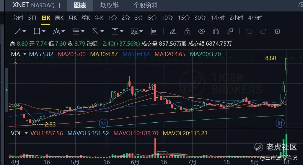 除此之外,就是被牛市影响的一些中概股,最近有爆发的机会,比如迅雷(XNET)