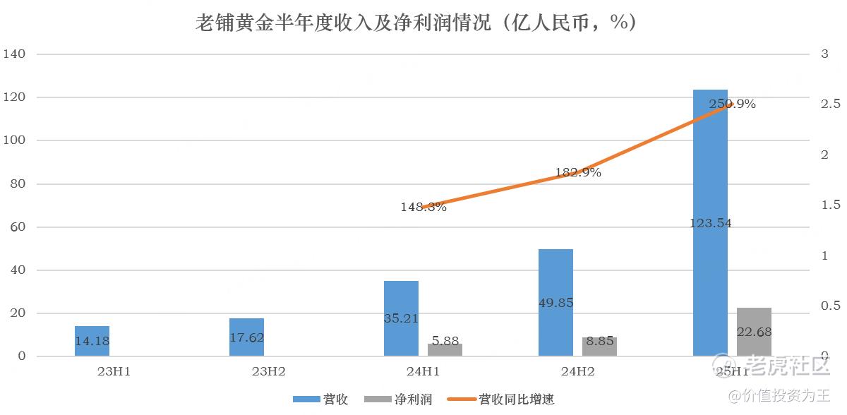 从收入上看,老铺黄金上半年营收123.5亿,同比增长250.9%: