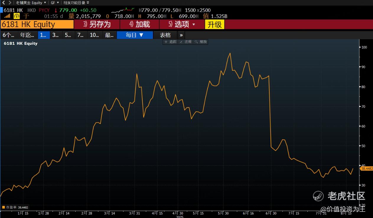 只不过,38倍的市盈率也不算低估,如果金价没有突破,老铺恐怕也难以在短期内新高。