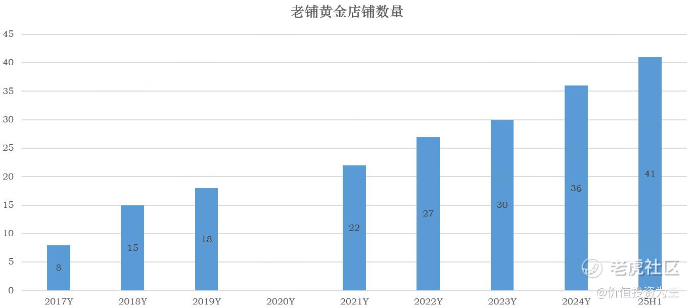 三是老铺黄金上半年新增5家店铺,总数达到41家: