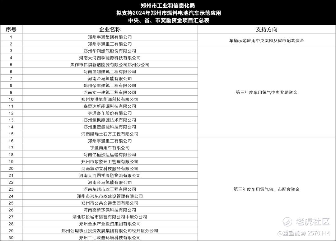 30家企业入选!郑州2024燃料电池汽车示范应用奖励资金拟支持名单公示