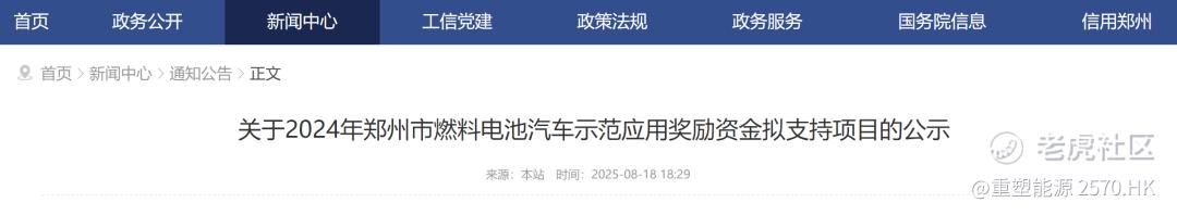 8月18日,郑州工信局在官网发布了《关于2024年郑州市燃料电池汽车示范应用奖励资金拟支持项目的公示》(以下简称《公示》)。