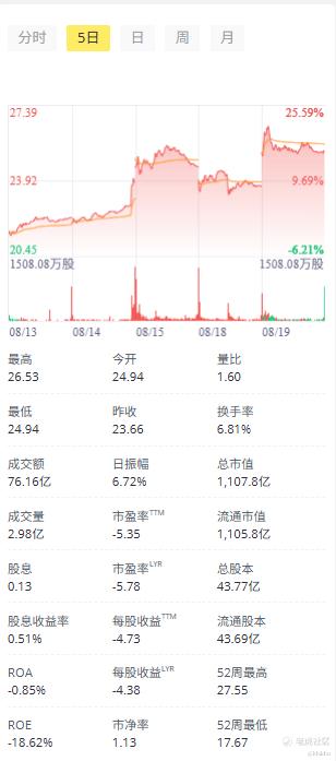 受“政府入股”消息及软银宣布投资20亿美元购买英特尔股票的利好影响,英特尔股价在8月强势反弹,昨晚8月19日最高峰到达了26.53一股 $英特尔(INTC)$ ,当前动态市盈率(未来12个月预期利润)达 53倍,为2002年以来最高水平,估值已接近互联网泡沫时期。
