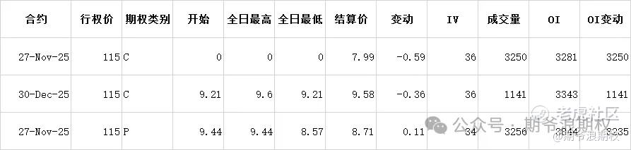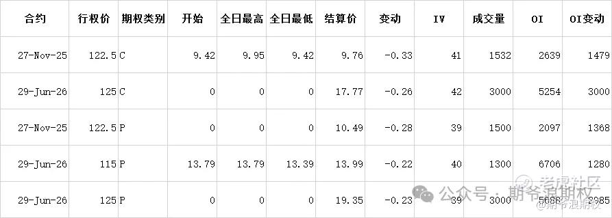 (2)美团:8月最大持仓范围115-150,窝轮牛熊街货分布115-145,今收120.8,不涨不跌,期权盘路变化超过1000张的仓位如下图。综合来看,美团可鞥会回到115的位置,大户人家有人愿意收货,有人希望出货。
