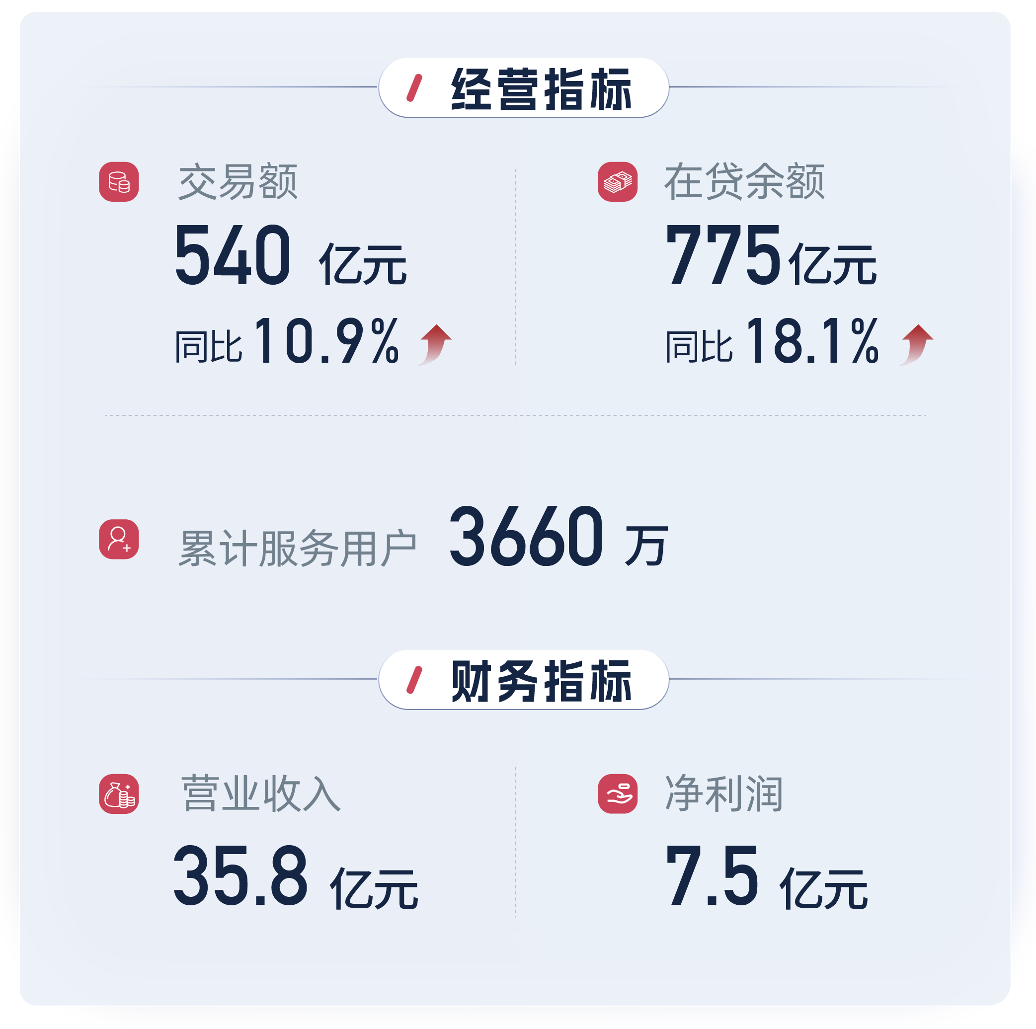 $信也科技(FINV)$ 北京时间8月21日,国内领先的金融科技集团信也科技(NYSE: FINV)公布2025年第二季度未经审计财务业绩。报告显示,公司二季度实现营收35.8亿元人民币,净利润7.5亿元人民币。经营层面,当季促成交易额达540亿元,同比增长10.9%;在贷余额775亿元,同比增长18.1%。截至二季度末,信也科技已累计为国内外近3660万用户提供信贷科技服务。