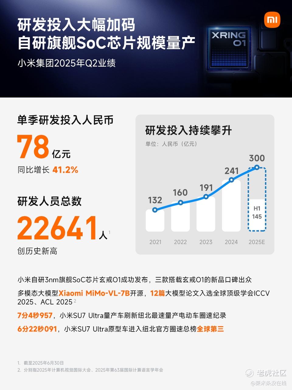 $小米集团-W(01810)$ 从研发投入就能看出小米对未来的野心,小米季度研发投入78亿,创历史新高,为 “人车家全生态” 提供坚实技术后盾,未来还会有更多创新的惊喜