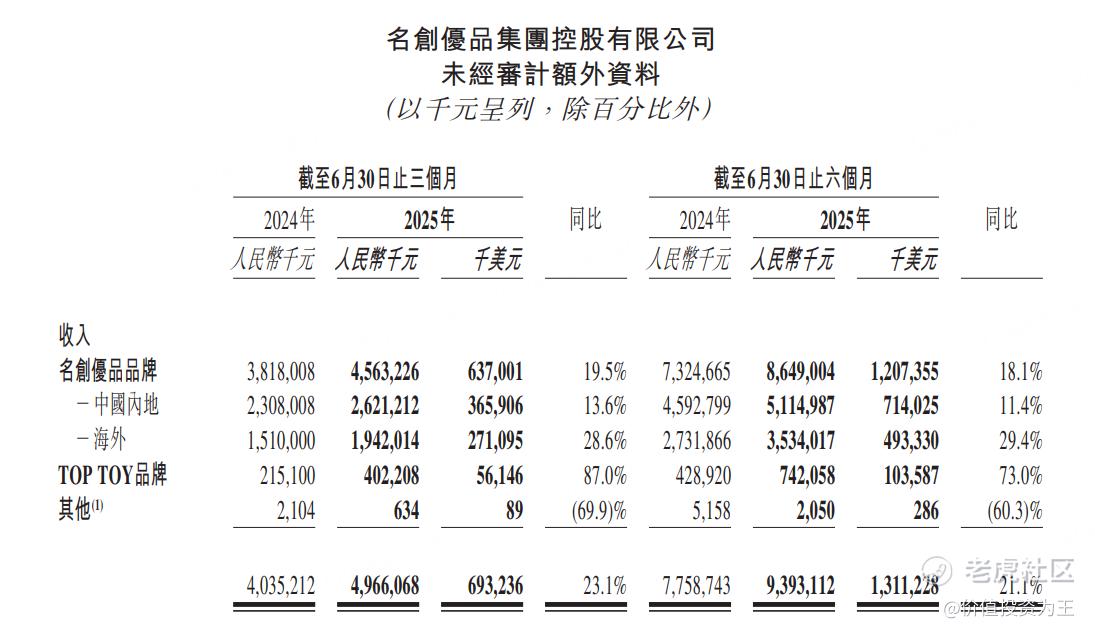 其中,名创优品品牌的同店销售增长同比持平,主要体现在(i)中国内地的低个位数增长,及(ii)海外市场的低个位数下降。