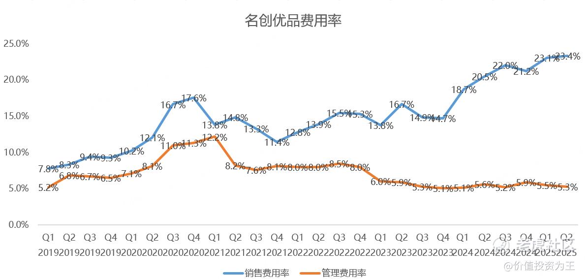 虽然营业利润比净利润好看许多,但增速依然低于营收,主要是公司费用端增速更高,如二季度销售费用达到11.6亿,同比增长40.4%,销售费用率由去年同期的20.5%提升至23.4%: