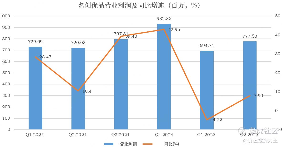 由此来看,名创优品二季度净利润下滑并非经营层面出现问题,如果看营业利润,二季度同比增长8%: