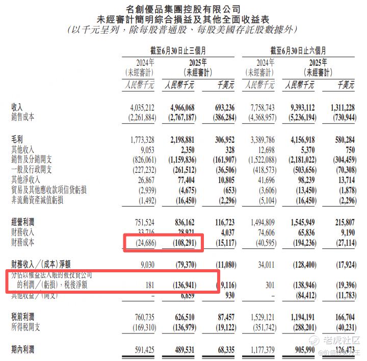 虽然收入和毛利率超预期,但名创优品二季度净利润为4.9亿,同比下滑16.7%,主要是因为名创优品于2025年1月发行的股票挂钩证券及与用于收购永辉超市股份有限公司股权的银行贷款有关的利息开支增加,导致财务成本净额为人民币79.4百万元,去年同期的财务收入净额为人民币9.0百万元。