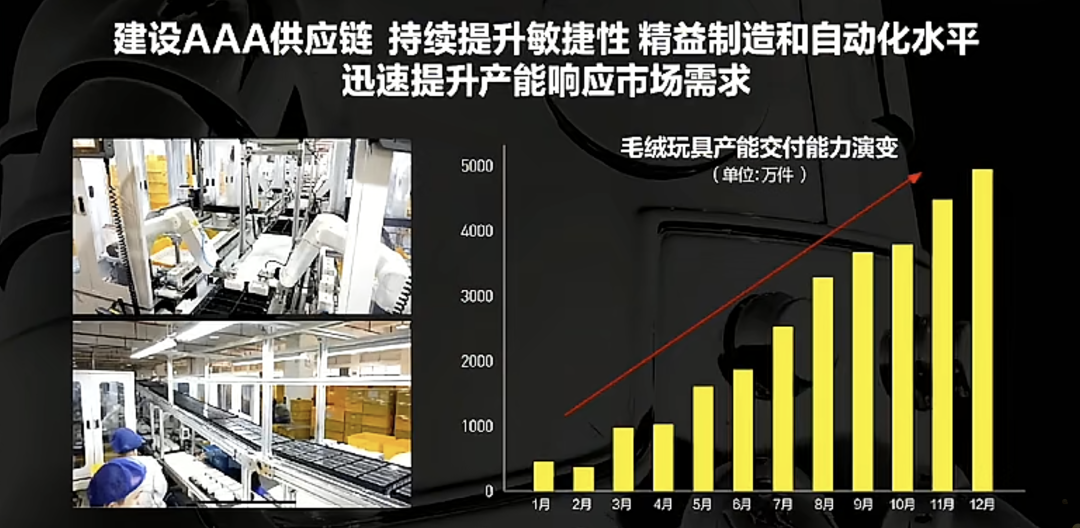 关于新制造,经过我们的自动化的改造,在以前比如潮玩公仔的行业自动化水平一般在20%左右,到今天我们的典型的工厂已经能够达到50%左右。