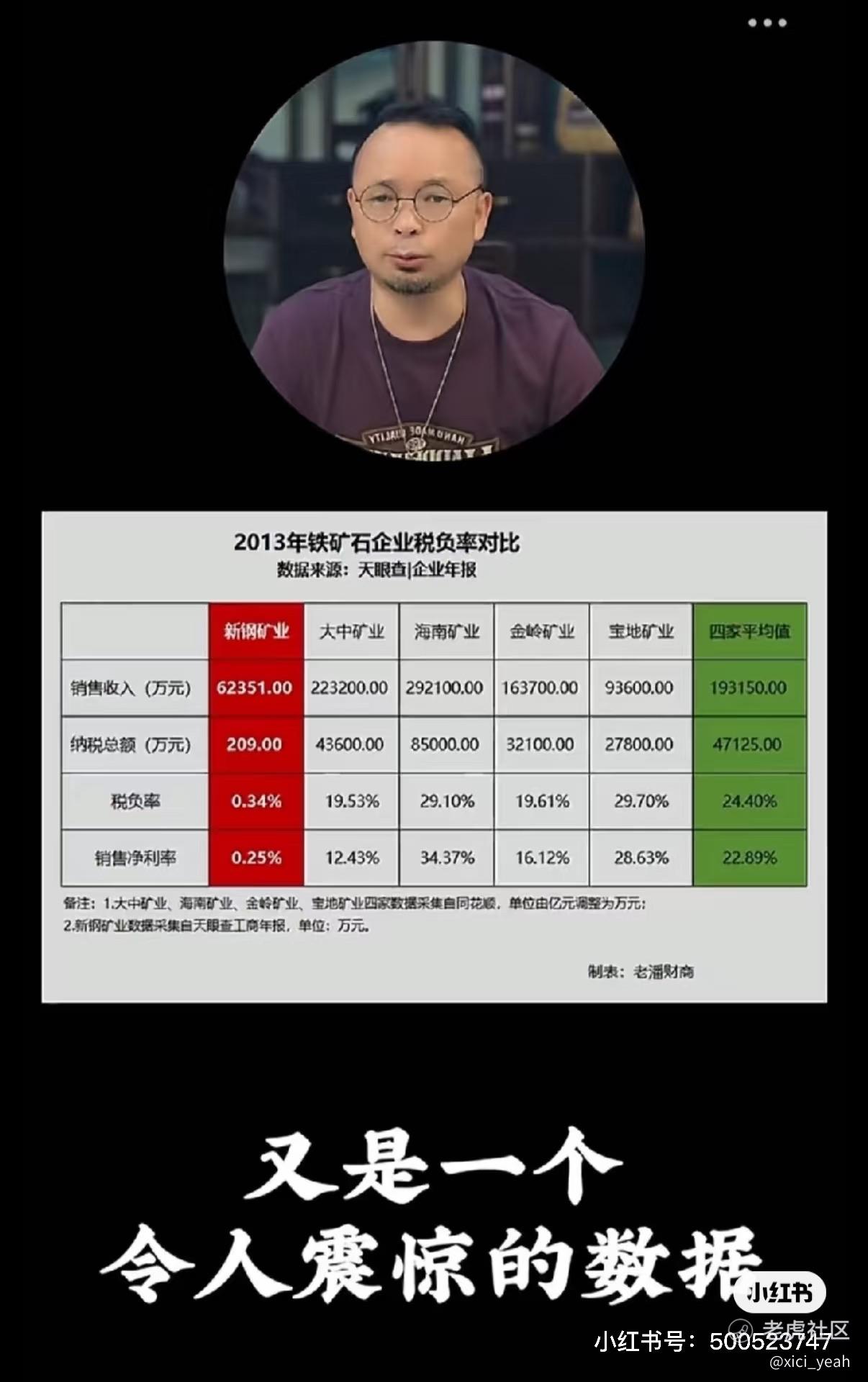 那一年,江西新余本地的国有 乌石山铁矿厂 陷入困境,大量工人被迫待岗内退,仅获寥寥几千元补助,在岗人员辛苦一年,工资也不过三万余元。可笑的是,新成立不过几年的虞公司竟创下高达6亿多的铁矿石供货量!而作为本地支柱、曾养活无数家庭的乌石山铁矿,其成交量却被挤压至区区8000多万。更可笑的是,同年虞公司缴纳的税款,竟不足乌石山铁矿的五分之一!面对同一产品、同一行业普遍为100块钱交19块钱的税,而虞仅纳税约3毛4分元。换算成数亿成交量,其避税获利之巨,触目惊心!