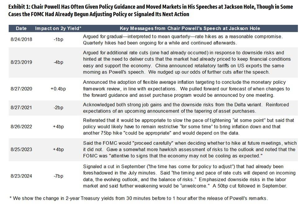 1,因为鲍威尔其实是一个非常注重和市场沟通的人,他基本上在前一次会议会给出下一次会议的看法,而在过去很多次Jacksonhole,他都给出了要么鸽派要么鹰派的看法。换句话说,Powell从没有在Jacksonhole上Data dependent