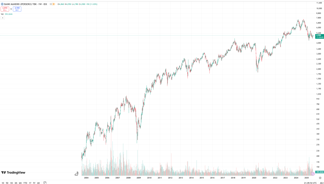 (印尼有四个大型国有银行,BNI,BRI和上图中的Mandiri,第四个是他们的房地产银行BTN差一点)