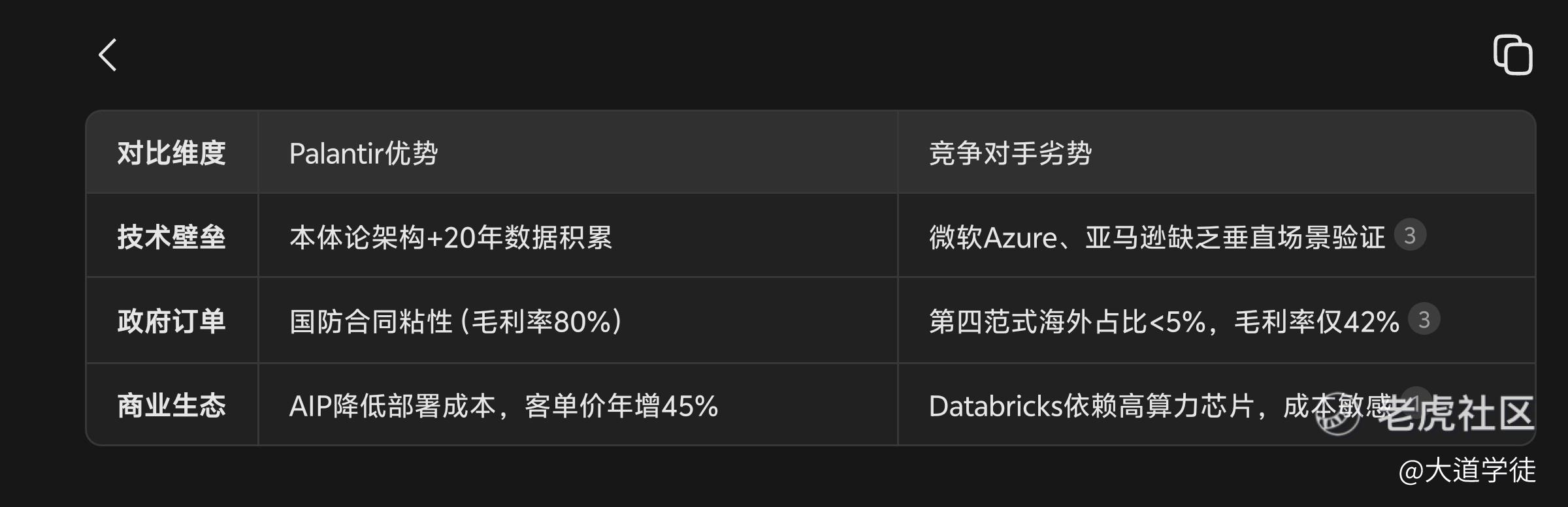 国防壁垒:垄断美军AI系统,合同金额超100亿美元(10年期)。