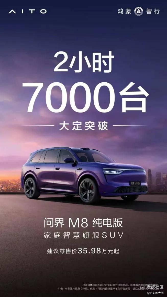 8月25日,问界M8纯电版正式上市,2小时后大定突破7000台。作为问界M8增程版的进阶之作,M8纯电版不仅延续了“八项全能”的核心产品价值,更在智能科技、三电系统、安全性能与用户体验等维度实现了全面跃升。