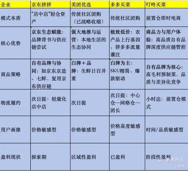 其他像叮咚买菜、盒马这样的跨界玩家,虽不属于传统社区团购,但其前置仓或店仓一体模式更侧重品质、即时性,吸引了对价格不敏感但追求便利和品质的用户,形成了差异化优势。