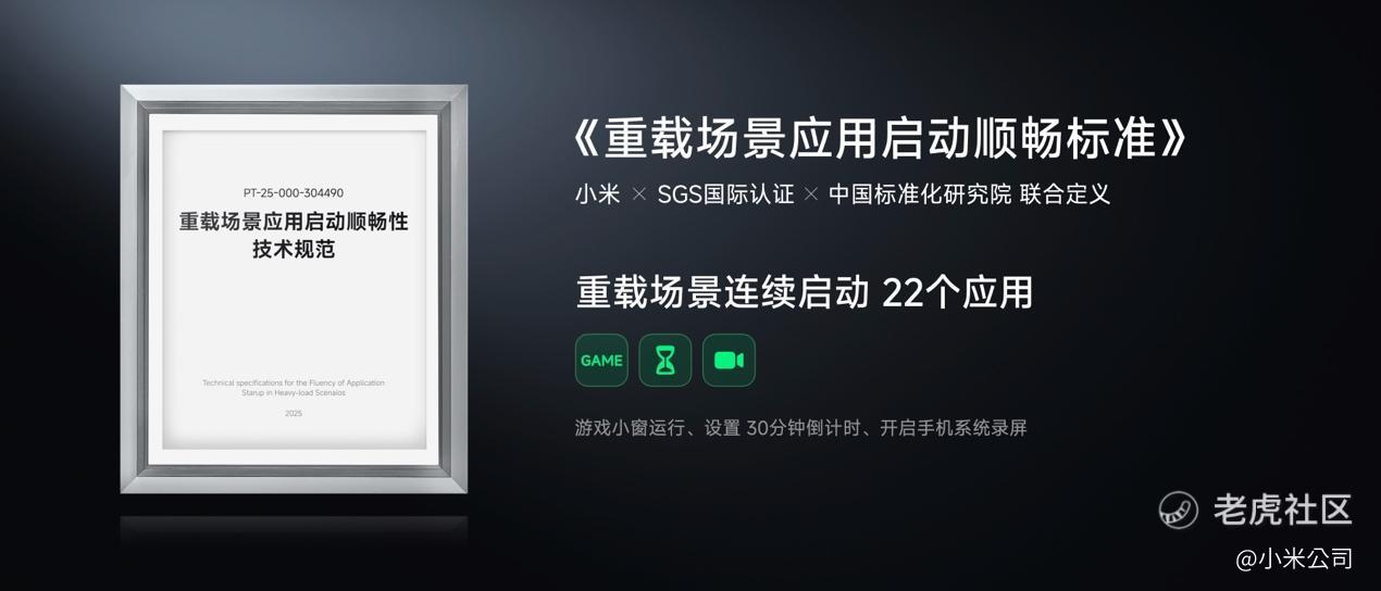 通过热点编译加速,小米澎湃OS 3得以全面改写系统内核和热点库。经过小米实验室测试数据显示,CPU运行过程中,全场景CPU执行指令数最高降低 4%,CPU能效最多优化10%。得益于小米澎湃OS 3在性能上的技术突破,小米联合SGS国际认证和中国标准化研究院共同定义《重载场景应用启动顺畅标准》,在打开游戏小窗、开启系统录屏、叠加倒计时窗口打断动画的重载场景下连续启动 22个应用,实现顺畅感全满贯。不止于此,小米澎湃OS 3在应用响应速度、应用使用功耗、游戏性能和功耗的表现上均是第一。