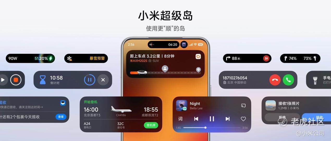 小米澎湃OS 3将焦点通知与设备通知进行融合,推出「小米超级岛」,方便用户一目了然得看到正在发生的重要信息。同时小米超级岛行业首创推出下拉小窗及拖拽分享功能,可将滴滴行程信息及时分享微信好友,实现即用即走、顺滑自然的使用体验,为通知信息提供了创新性的解决方案。