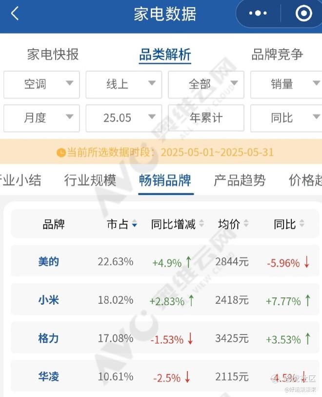 $小米集团-W(01810)$ 一个月的市占率竞争不是重点,重点是怎么在在未来空调市场站稳脚跟?还是得靠综合能力说话,智能生态体验要出色、核心技术要突破、渠道效率要提升、品牌忠诚度要稳固。小米人车家全生态一一满足,空调业务增速领先,优势一目了然。