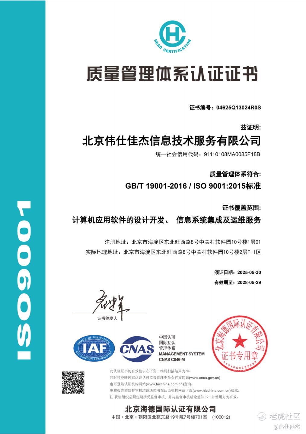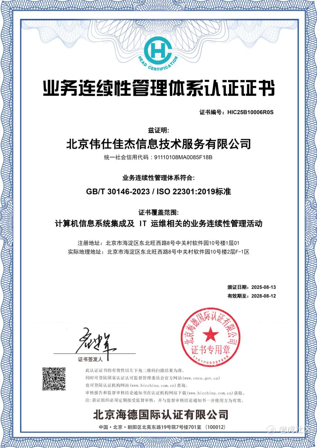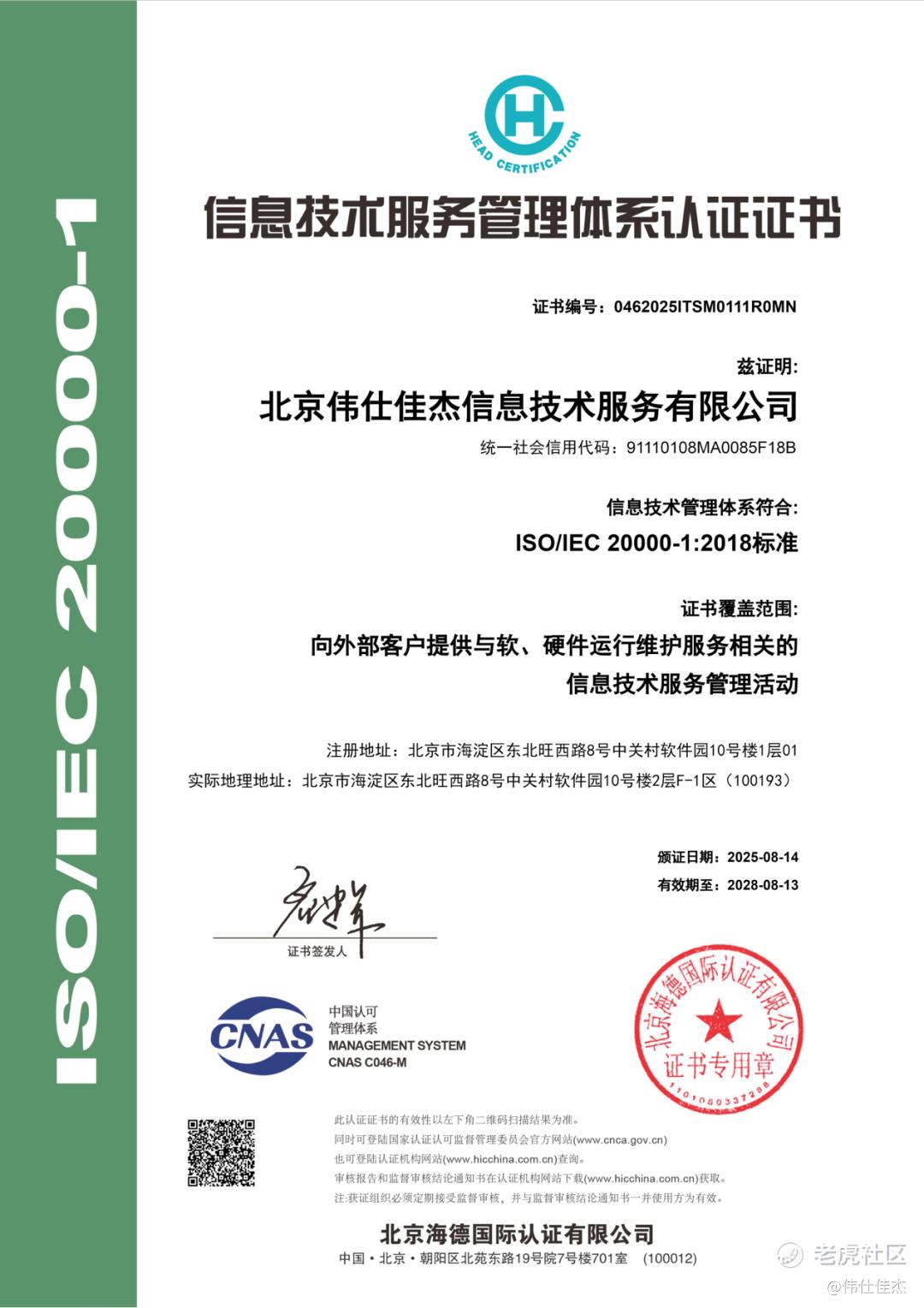 近日,伟仕佳杰服务公司通过了一系ISO列体系认证,标志着服务公司在产品质量控制、信息安全防护、IT 服务标准化等核心维度,全面达到国际通用管理标准,为客户提供更可靠的服务体验再添 “硬背书”。通过 “安全、稳定、可控”的IT 服务,满足“流程规范、风险可控”的客户需求,不断增强客户和合作伙伴的信心。