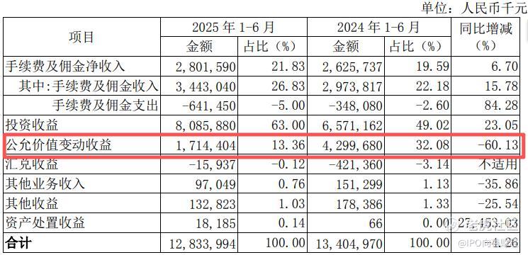能够看到,其非息收入中,公允价值大幅减少60.13%。
