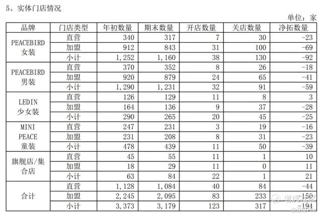 其中,PEACEBIRD女装营收10.6亿元,同比下降10.45%;PEACEBIRD男装营收11.8亿元,同比下降7.42%;LEDIN少女装营收2.32亿元,同比下降7.18%;MINIPEACE童装表现相对较好,营收3.77亿元,但仍下跌3.73%。尽管公司试图通过品牌多元化来分散风险,但整体上仍未能扭转业绩下滑的趋势。