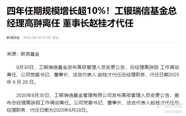 8000亿巨头工银瑞信基金总经理高翀离任,任上百亿女经理袁芳离奇裸辞,张宇帆等相继离职,赵桂才是该被问责还是背锅?